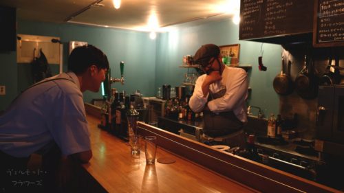ヴェルモット・フラワーズ 公演写真 2023.08.032023.08.04 お酒と演劇を楽しむまちなか短編演劇『ヴェルモット・フラワーズ』。スタンディングバーkakatoをそのまま舞台にし上演しました。(ゲネプロ時の写真です)